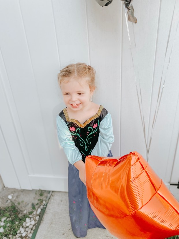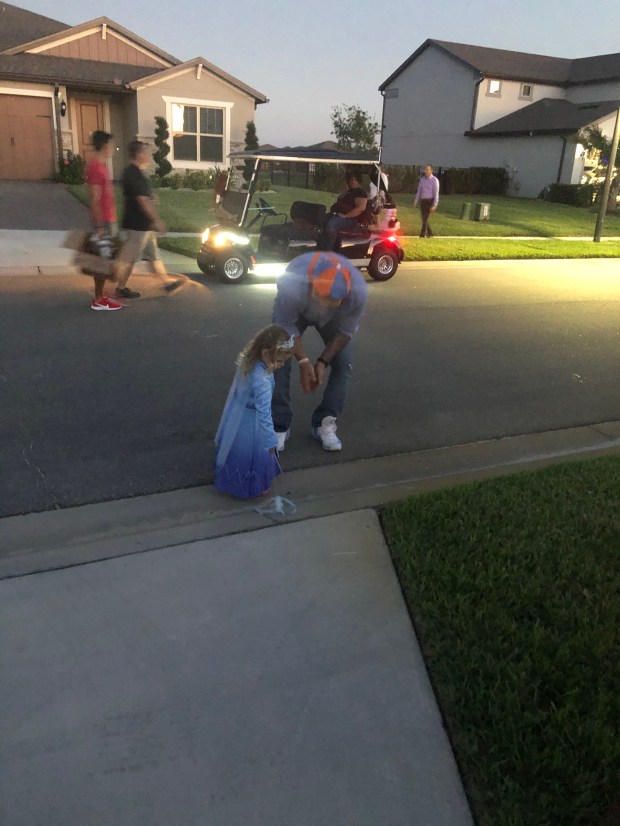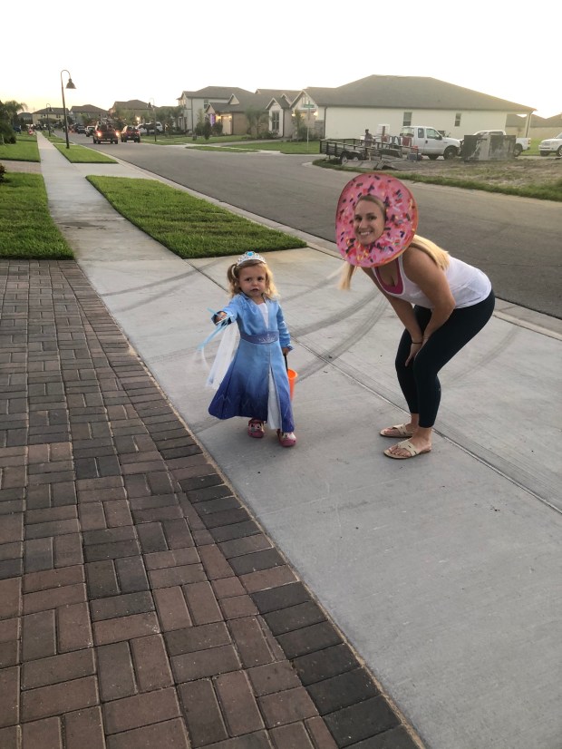 While she acted shy when people tried to give her candy, she said she had the best trick-or-treat ever! It was probably because she met “blippi” and she spent the night stalking his golf cart and asking him if he liked her dress.