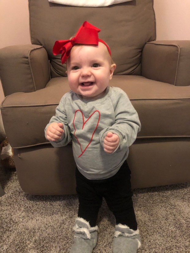 Leighton is still chill as ever. She loves to play, clap, wave and has been babbling lots of “ba”s and “ma”s….no “da” sound yet so I may win this battle. 🏆