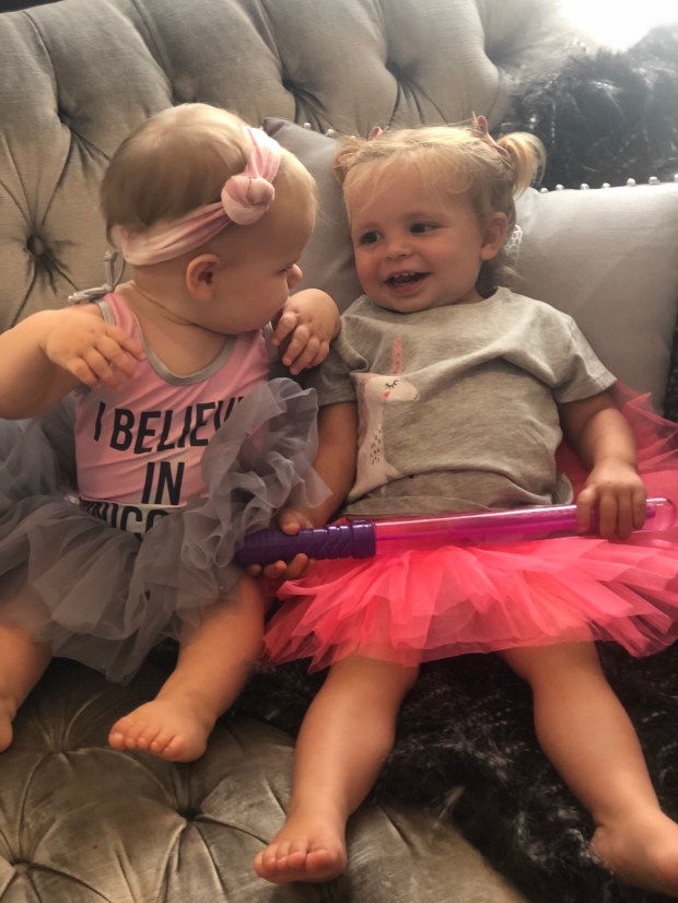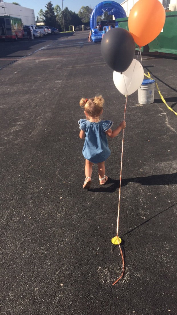 KB is still obsessed with balloons (currently pronounced “mamoons”), car seats, strollers, and her bestie, “HenWoah”!