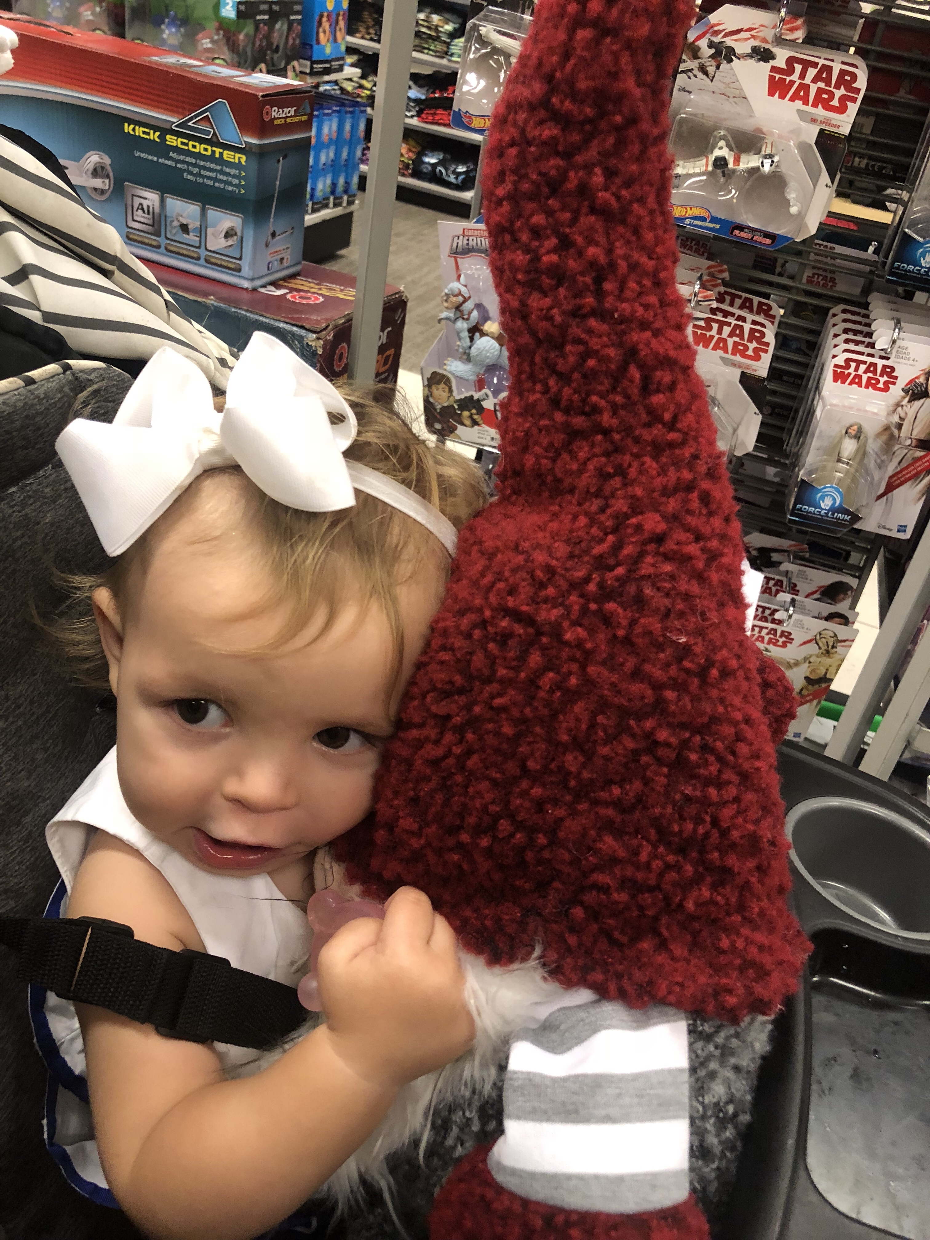 She hugged this Santa gnome the rest of the time we were in the store. Literally. The whole time.