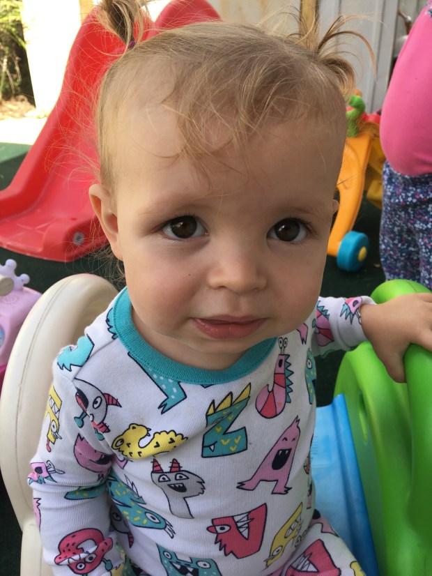 Anyway, we BOTH survived the day and it came with some extra entertainment. Quick back story: she’s going to an at home daycare with a lady a few friends of ours use and they’ve known her forever. I was under strict orders to drop her off in her PJs (and you listen when a Spanish Grandma tells you that!) and when I picked her up, she was in clothes I didn’t pack for her, had never actually seen before, and her hair was redone in a perfect Spanish ponytail. πππ