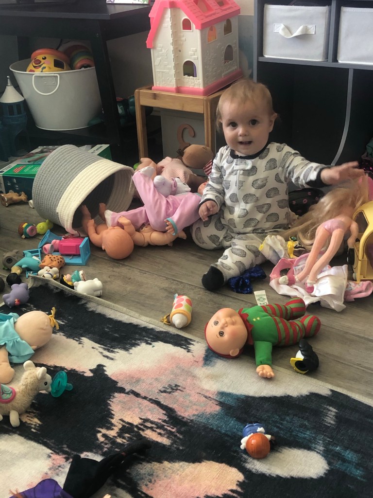 Now that sheās on the move, scooting, ācrawlingā and climbing everywhere, her favorite hobbies include pulling out any and every toy she can reach – which is Kensieās nightmare. š Since K was a baby I have always cleaned the playroom every single night when sheād go to bed. My OCD may have created a monster. Kens wonāt play in the room if itās a mess and freaks out when L is the one making it. She gasps and goes āMOMMY!!! Sister is making a MESSY!!!ā I have to assure her itās okay and that Iāll help her clean it up. š¤£